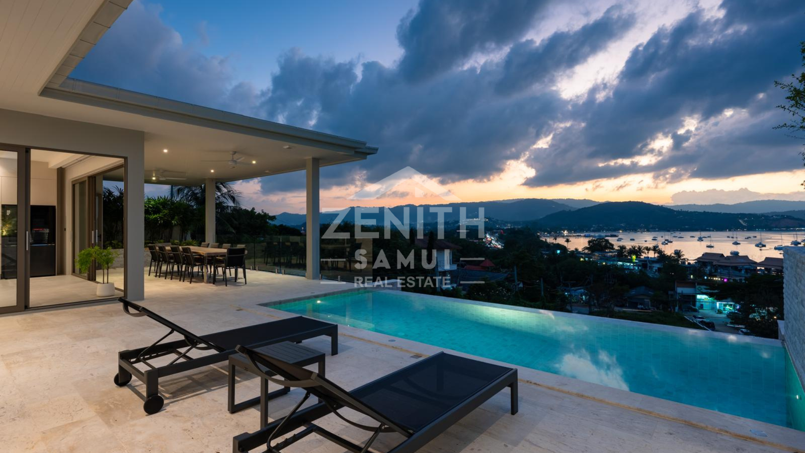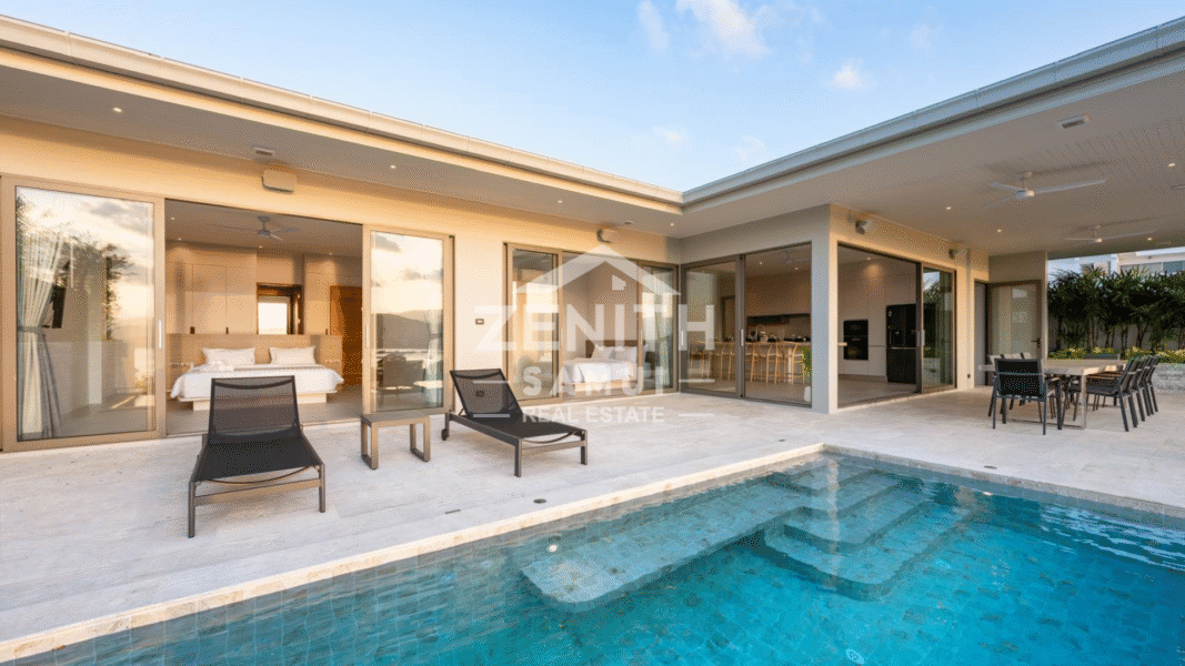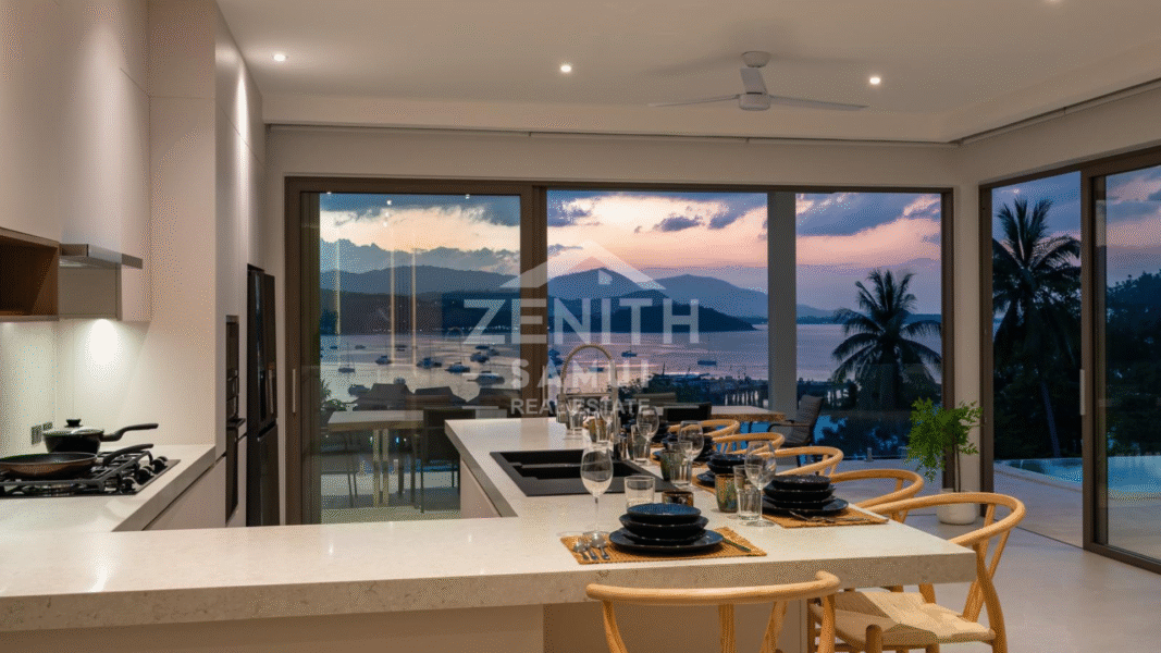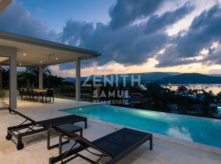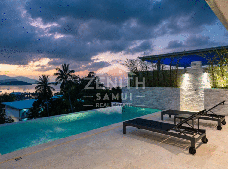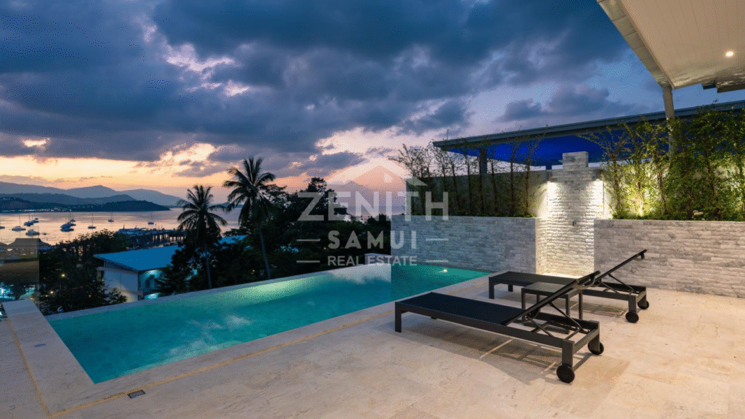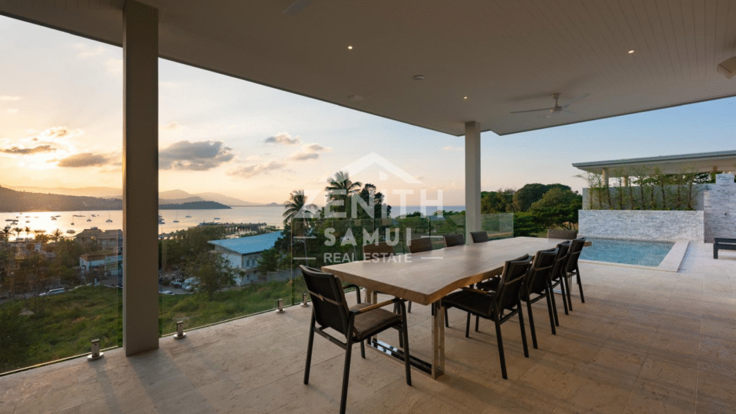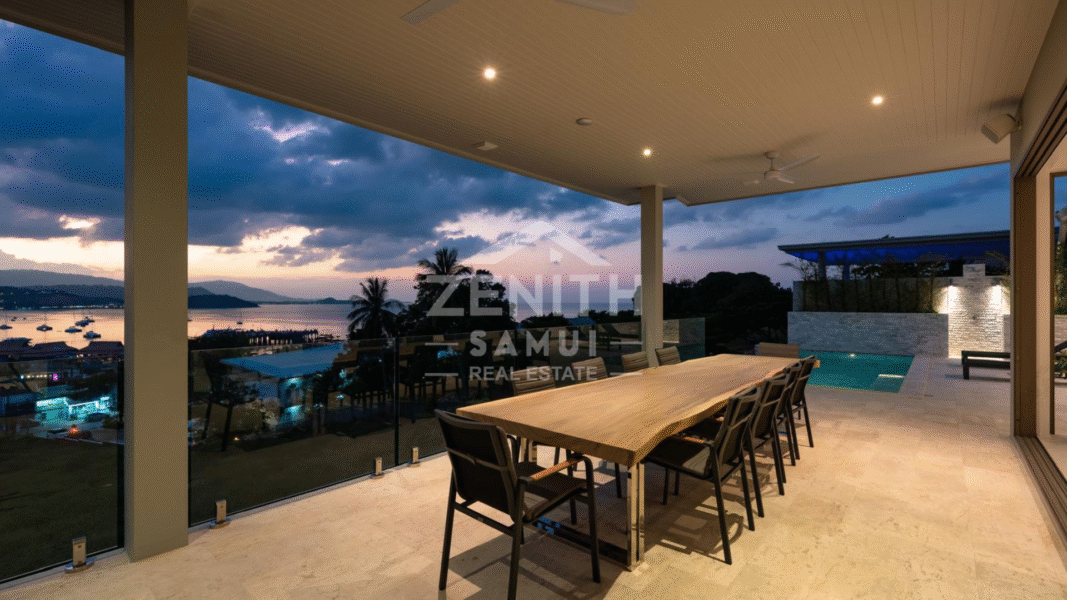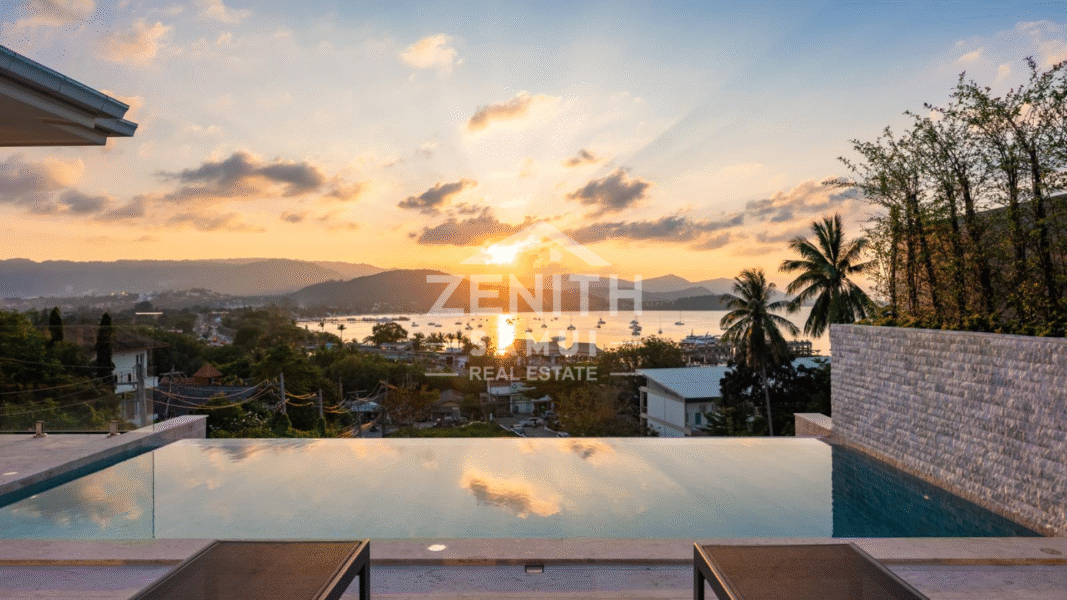 Located in Bangrak, one of Koh Samui's most sought-after areas, this luxury villa offers a refined living environment with stunning panoramic sea views and breathtaking sunsets. Ideally situated just minutes from the beach, restaurants, and shopping, this property offers both tranquility and accessibility.