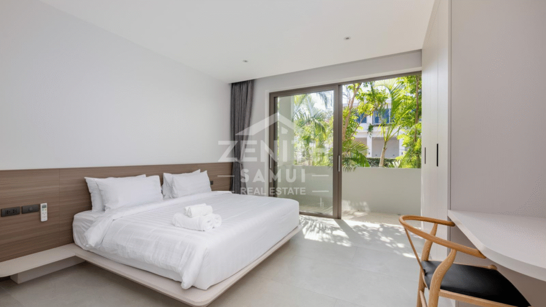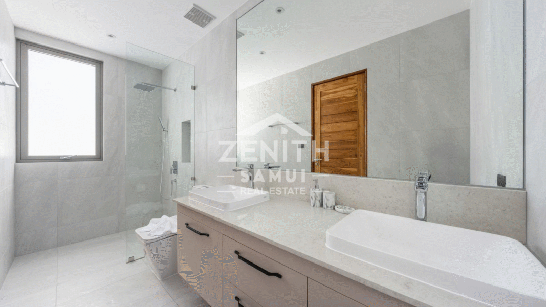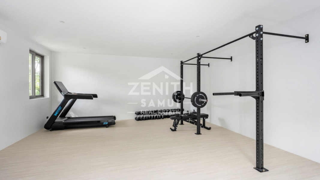 Outside, the villa boasts an infinity swimming pool with sea views, a wellness area with a fully equipped fitness room, and private parking. The property is sold fully furnished and equipped, offering immediate comfort. This villa presents a unique opportunity, ideal as a primary residence, holiday home, or high-performing rental investment in one of Koh Samui's most desirable locations.