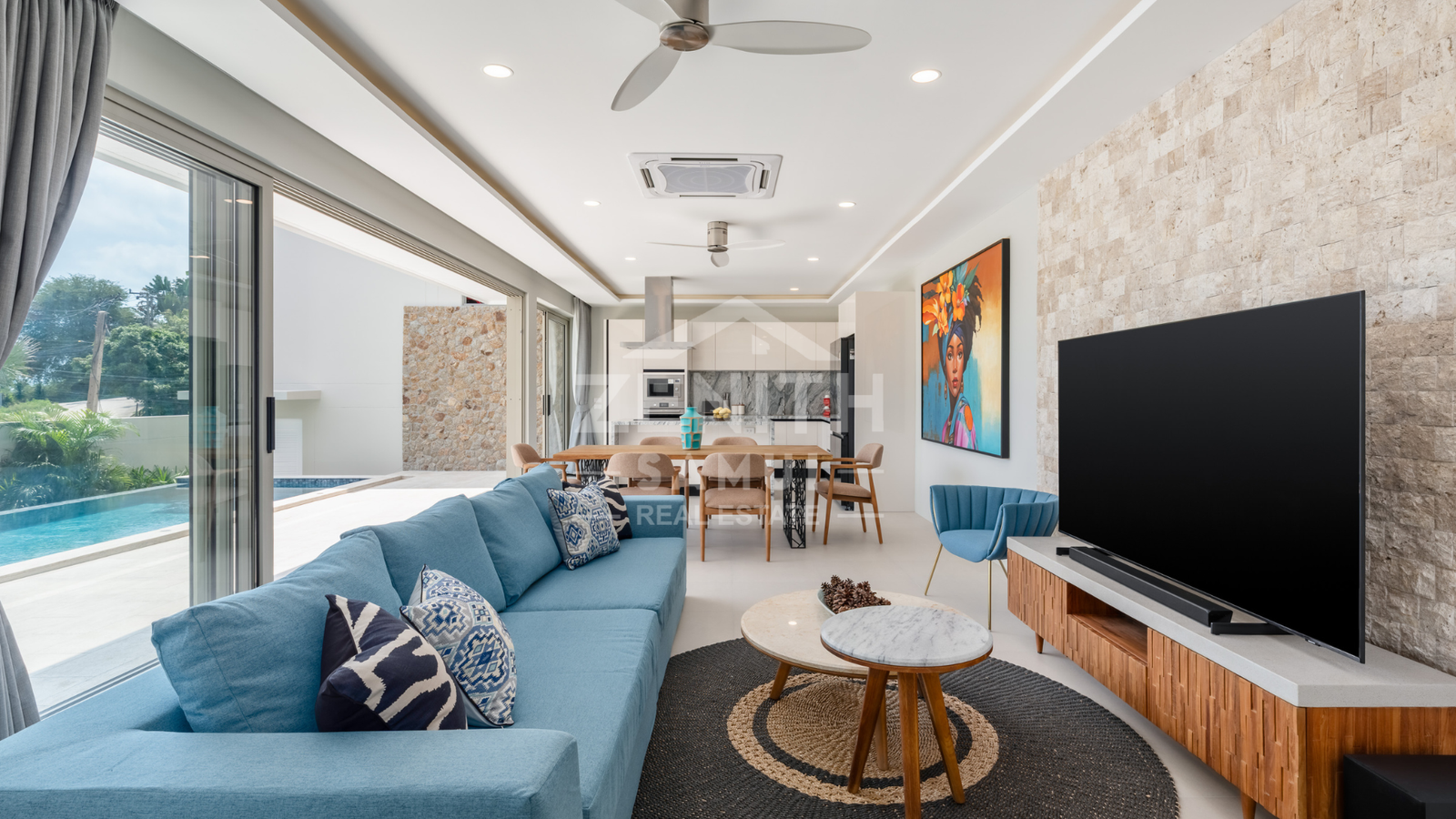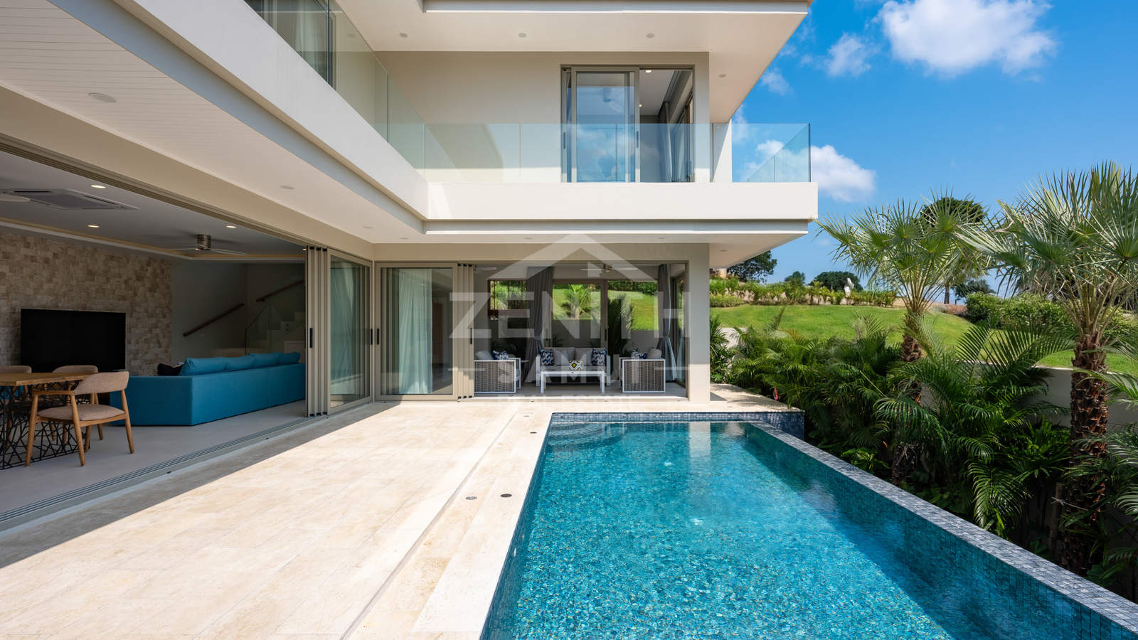 Outside, a spacious terrace and private swimming pool are set within a fully walled tropical garden, along with covered parking for two vehicles. The property will be equipped with air conditioning and ceiling fans throughout, ensuring optimal comfort.